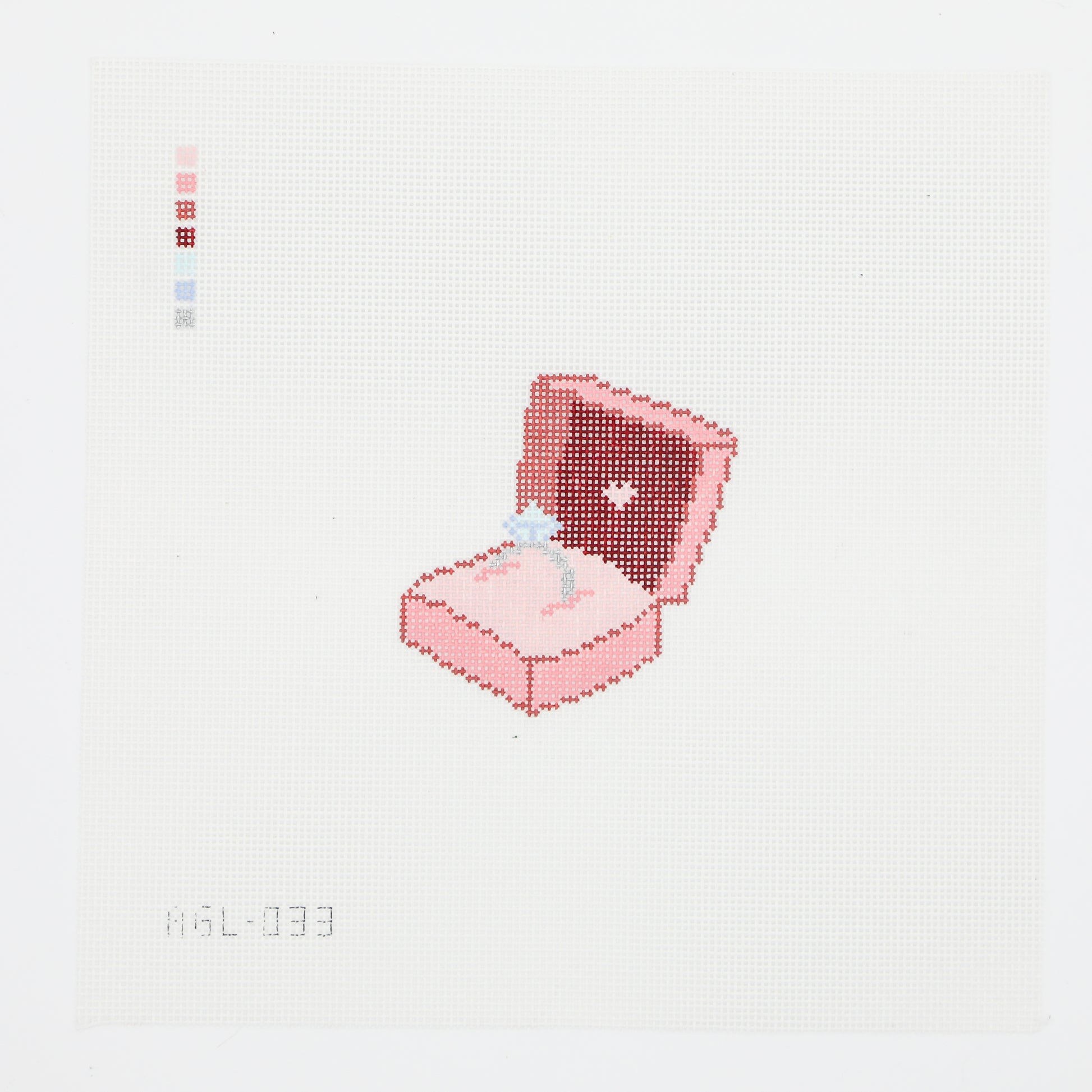 Celebrate life’s most special moment with this elegant Engagement Ring Box needlepoint canvas. Hand-painted on 18 mesh canvas and measuring 3" x 3", this charming design makes a perfect keepsake ornament, ring pillow, or framed accent to mark an engagement or wedding day.