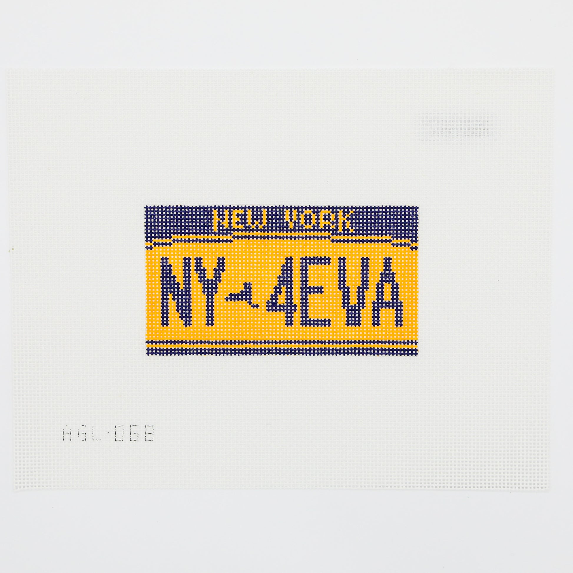 Show your love for the Big Apple with the NY 4 EVA License Plate needlepoint canvas! Hand-painted on 18 mesh canvas and measuring 4.0" x 2.2", this fun design captures the spirit of New York in the style of a classic license plate, perfect for anyone who calls the city home (or wishes they did!).