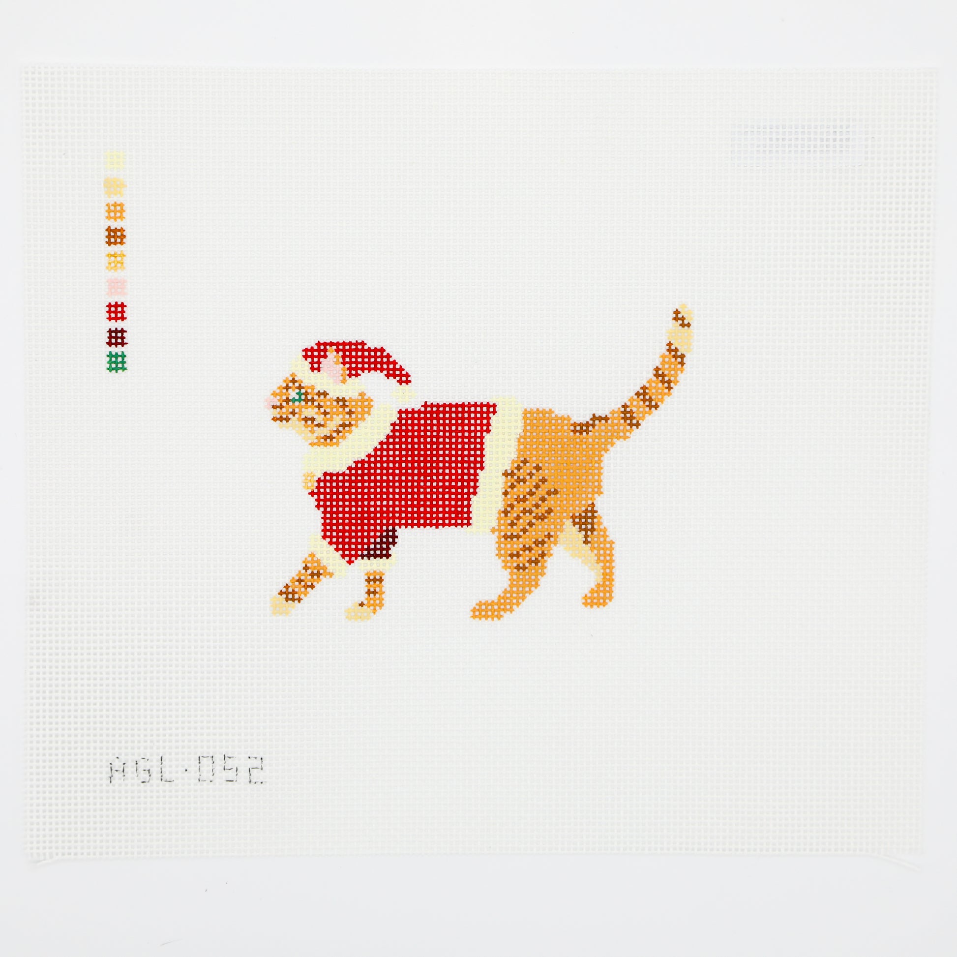 Bring festive fun to your stitching with this adorable Santa Orange Cat needlepoint canvas! Hand-painted on 18 mesh canvas and measuring 4" x 4", this charming design features a lovable Orange Cat dressed in a Santa hat, perfect for cat lovers and holiday enthusiasts alike.