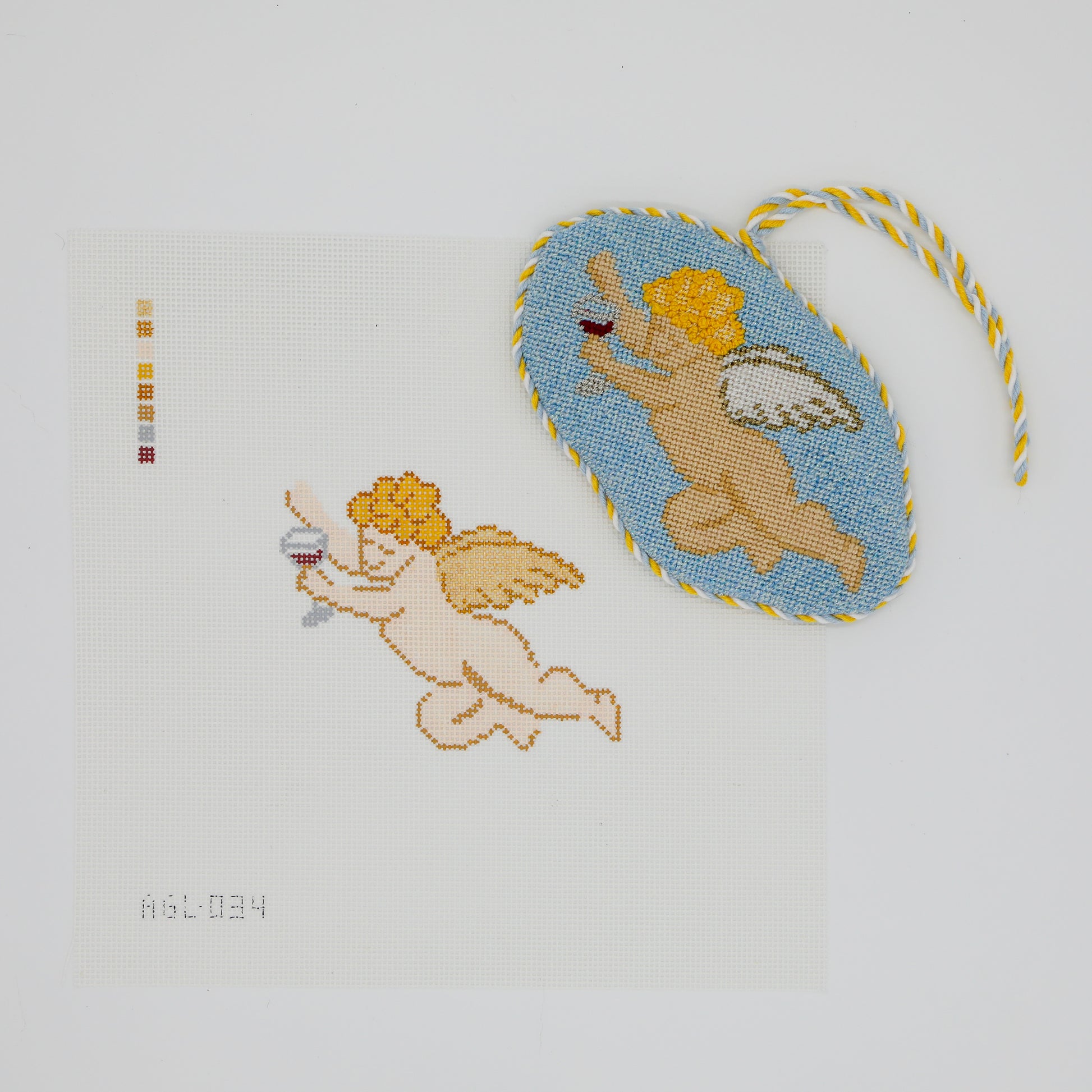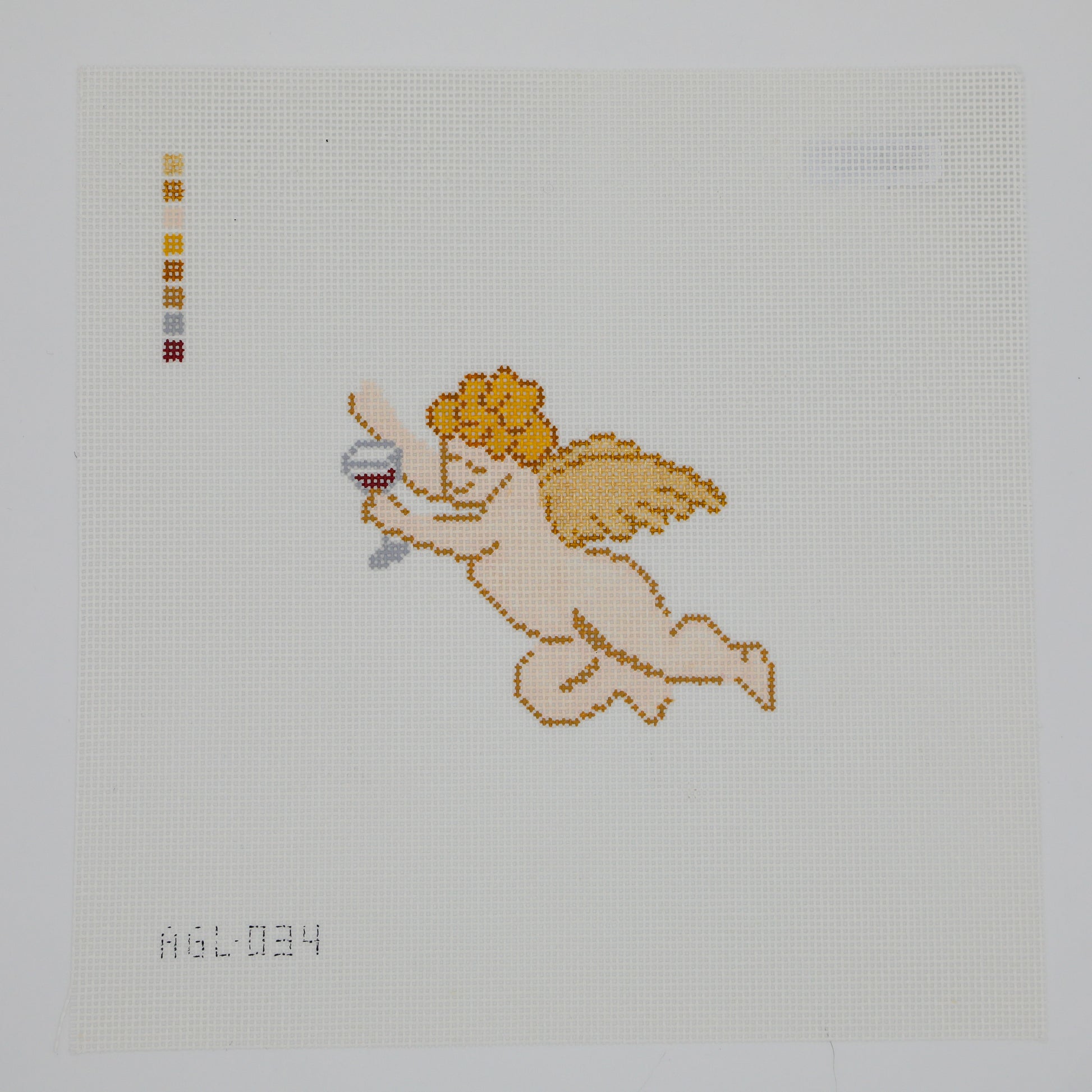Add a little love (and a little wine) to your next project with our Wine Cupid Needlepoint Canvas, hand-painted on 18-count mono canvas. Measuring 4" x 4", this charming design features a playful cupid ready to celebrate with a glass in hand — perfect for creating an ornament, a gift tag, or a small accent piece.